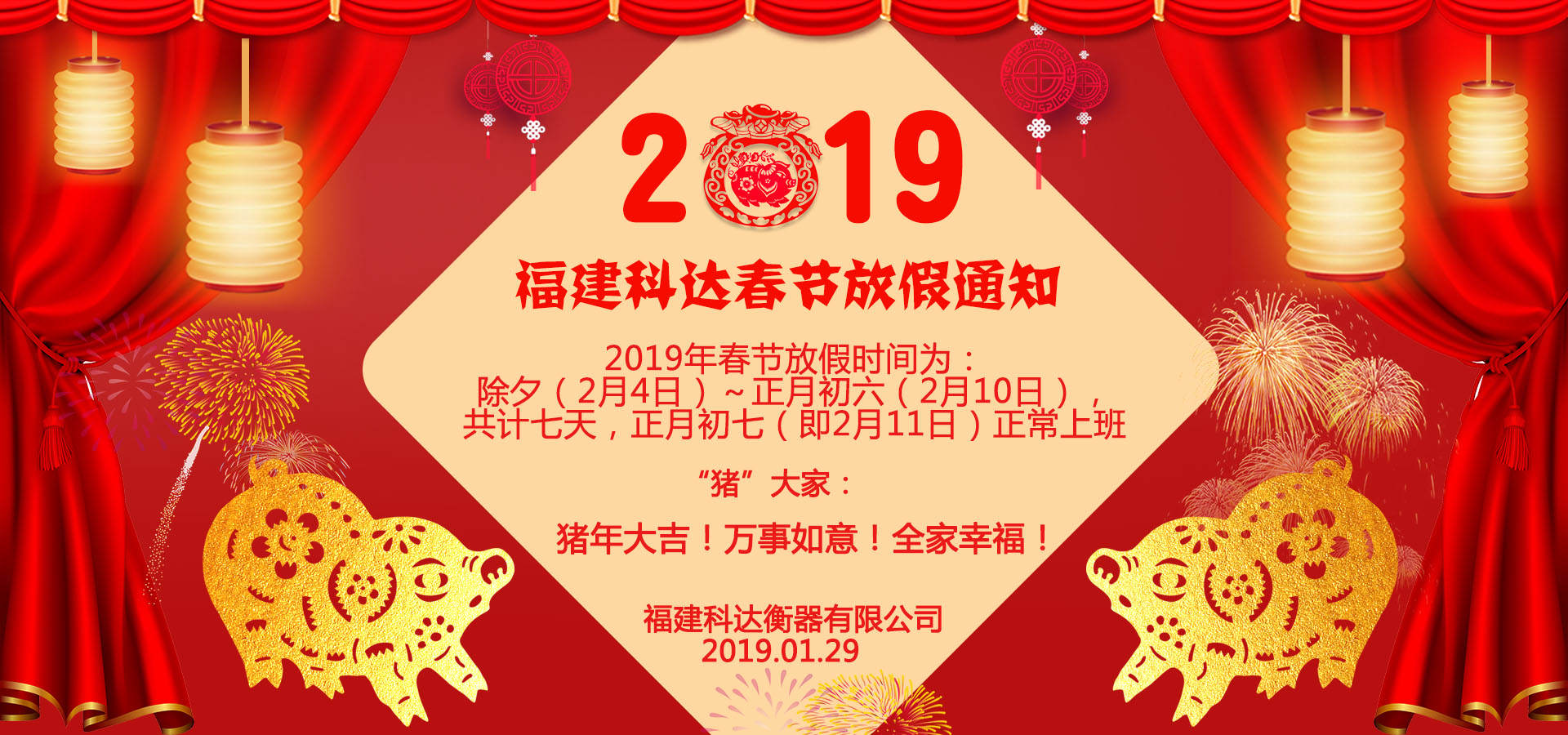 2019年福建科達衡器有限公司春節(jié)放假通知
